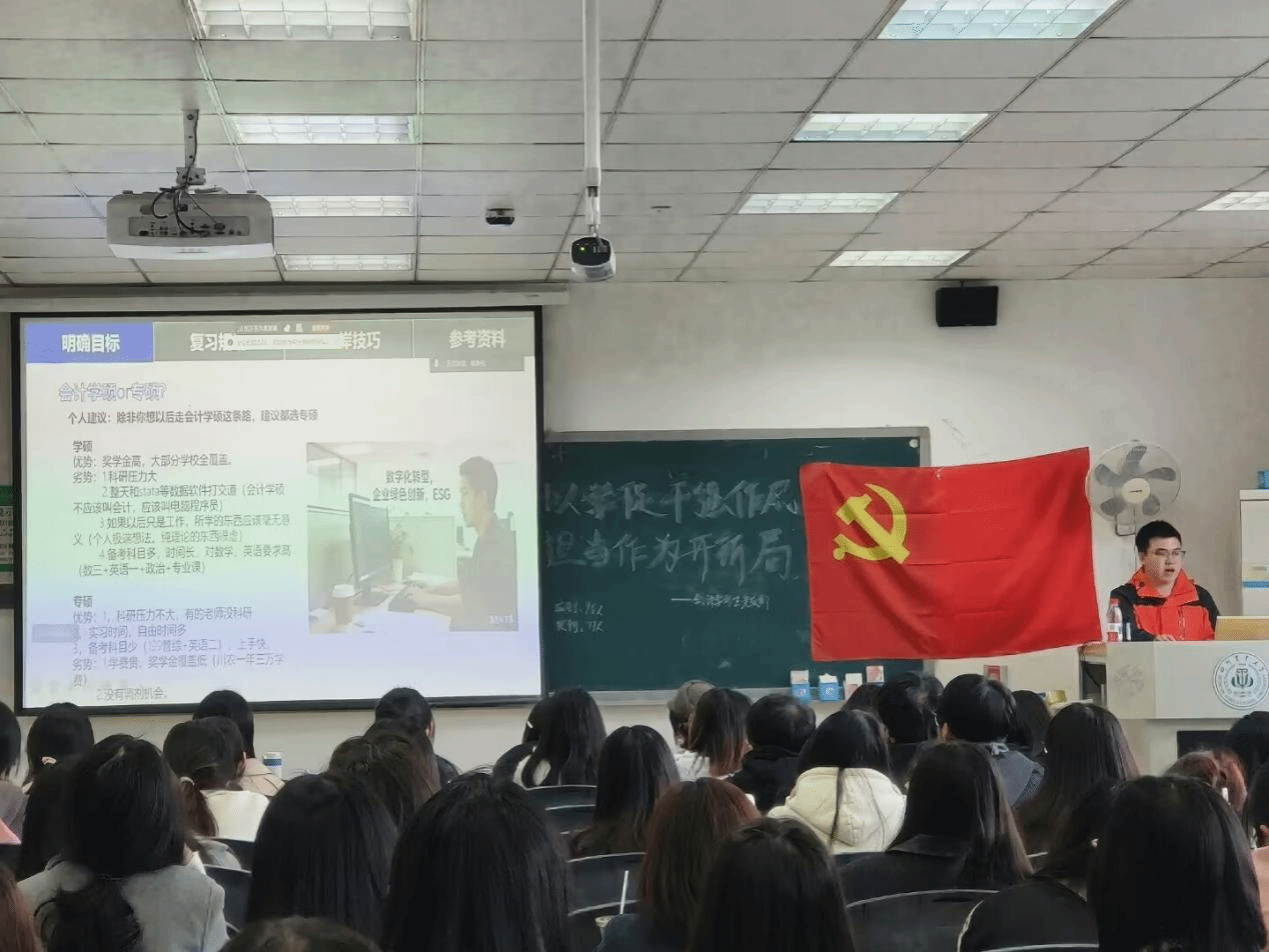为深入学习贯彻习近平新时代中国特色社会主义思想,全面落实从严治党要求,切实加强党支部思想政治建设与作风建设。3月24日,会计学学生党支部于2A202教室开展“以学促干强作风 担当作为开新局”3月组织生活会。支部全体党员同志参加会议,并邀请优秀研究生学长进行考研生涯分享。