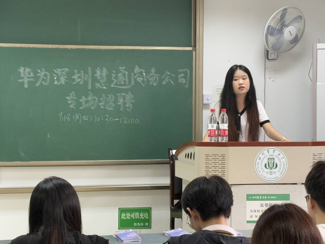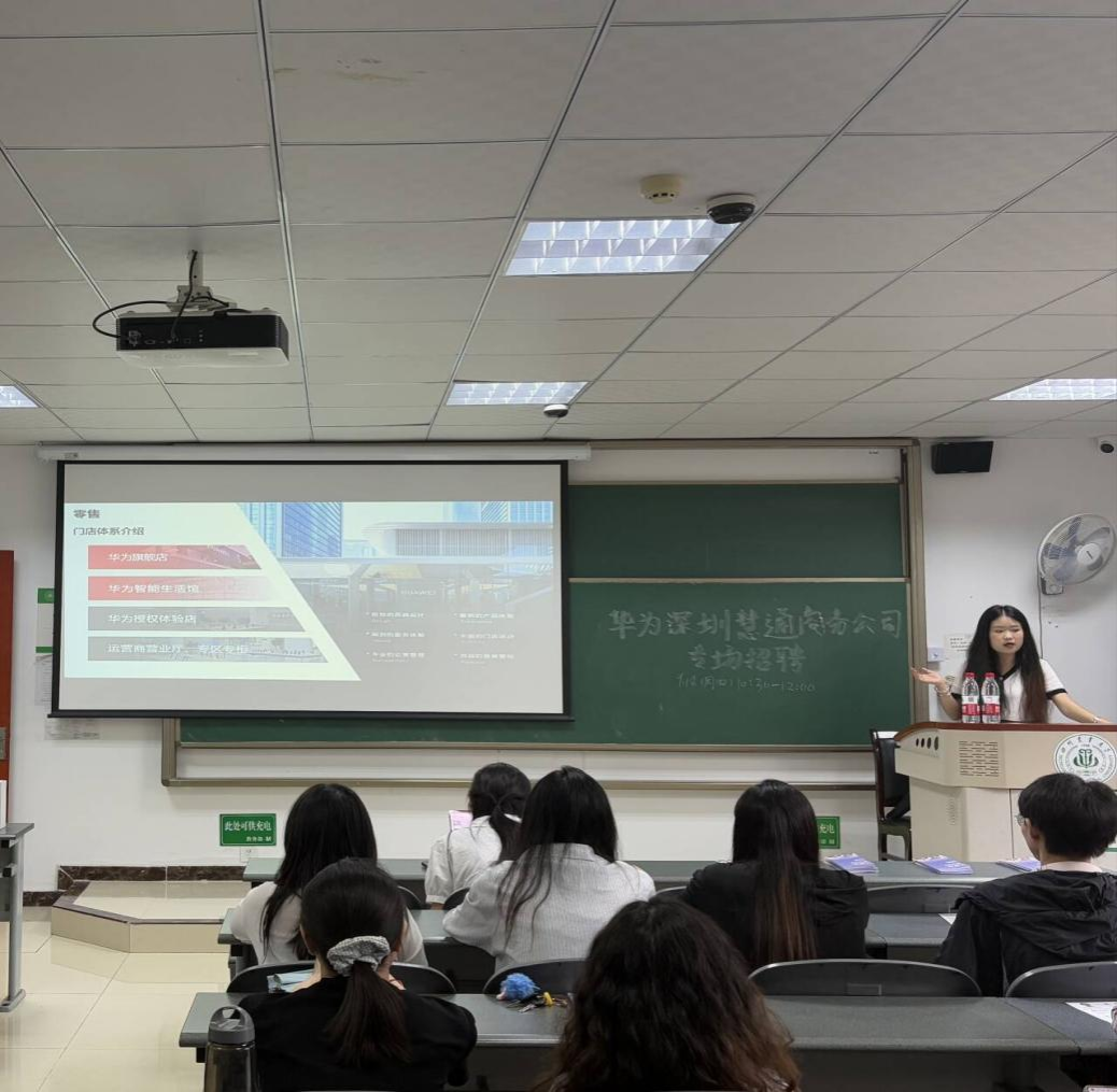 9月18日上午,华为深圳慧通商务有限公司专场招聘会在川农都江堰校区5408教室顺利举办。华为慧通招聘经理朱琪琪携团队到场,面向20余位同学系统介绍了公司概况、核心产品与零售门店体系,现场接收简历并组织面试。