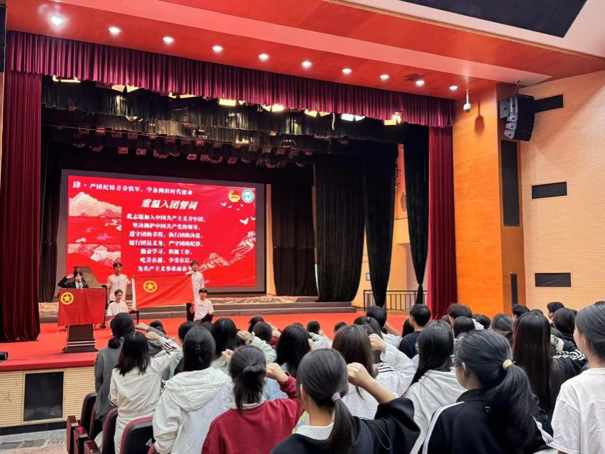 本次活动分为“铭记历史八十载,赓续初心万里程”“百年校史砺初心,青春建功新时代”“志愿星火耀世运,青春接力谱新篇”“严团纪铸青春铁军,学条例担时代使命”四个环节。奏唱团歌后,全体成员观看抗战胜利80周年纪念影片。第十二期青马班成员徐国峰引领同学们回望烽火岁月,解读抗战精神内涵。新生代表周文静诵读“烽火涅槃·和平长明”征文比赛中的优秀作品,引发全场同学的强烈共鸣。