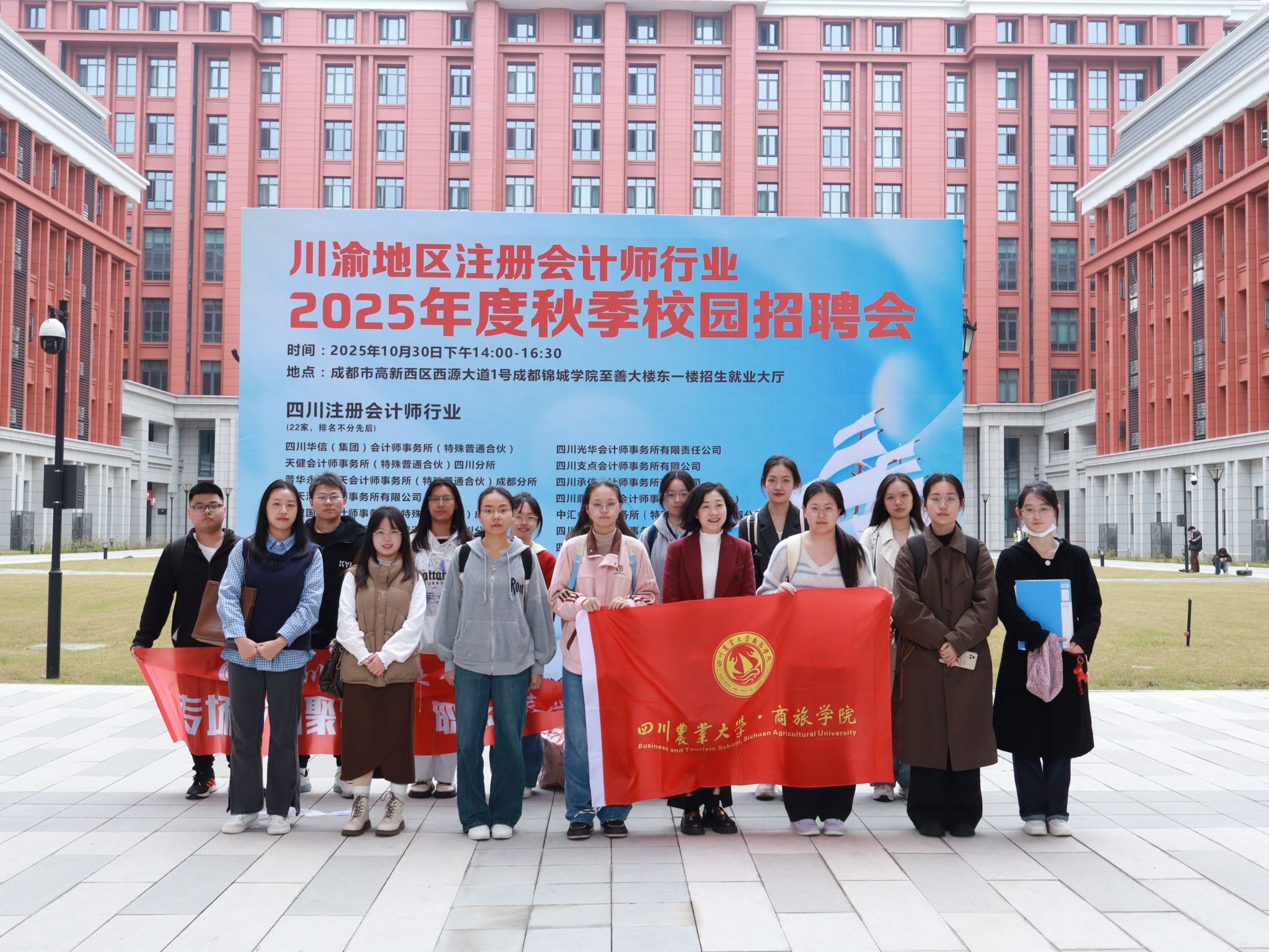 10月30日下午,“职”为你工作室聚焦我院毕业生高质量就业,精心推进“四川农业大学‘职场面对面’就业育人品牌项目”,我院组织16名毕业生赴四川注册会计师行业成都锦城学院专场招聘会,学院党委副书记魏瑶带队参会并全程指导。