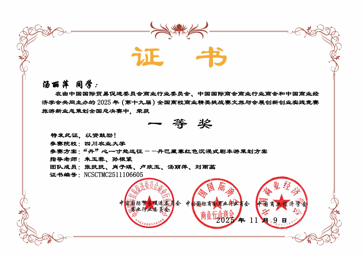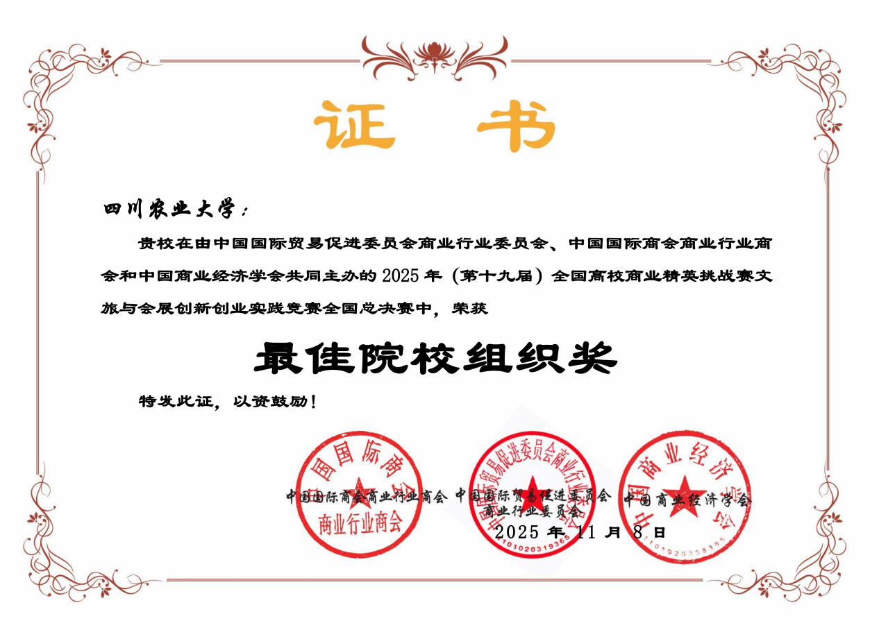 2025年11月,第十九届全国高校商业精英挑战赛文旅与会展创新创业实践竞赛全国总决赛圆满落下帷幕。我院学子在此次竞赛中表现优异,来自商旅学院的15支参赛队伍在全国总决赛中斩获一等奖2项、二等奖5项、三等奖8项,成绩斐然。同时,我校凭借规范有序的组织和出色的参赛表现,荣获“最佳院校组织奖”。