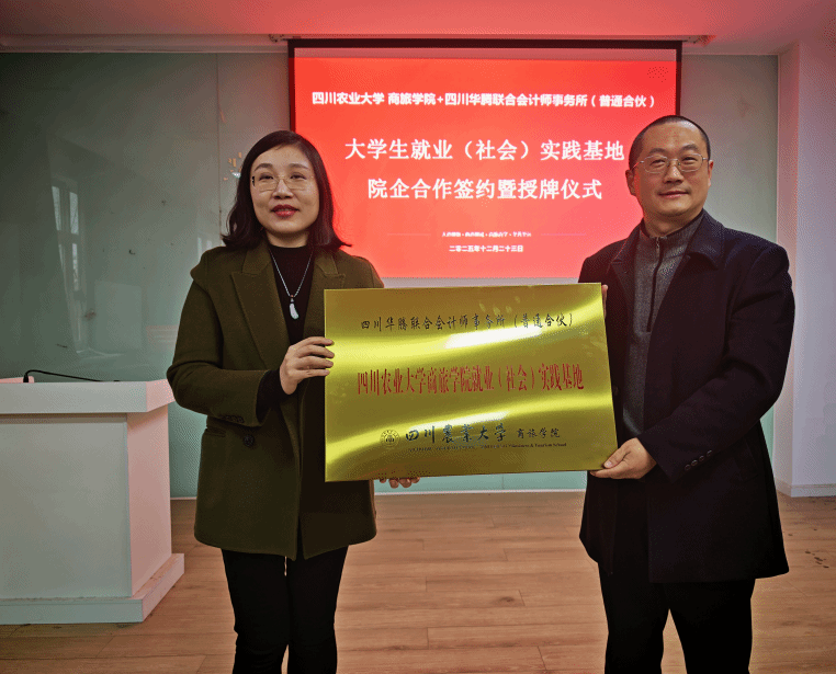 12月22日、23日,学院分别与尤尼泰振青会计师事务所(特殊普通合伙)和四川华腾联合会计师事务所(普通合伙)两家合作单位签订四川农业大学大学生校外实践教育基地院企合作协议并举行授牌仪式。