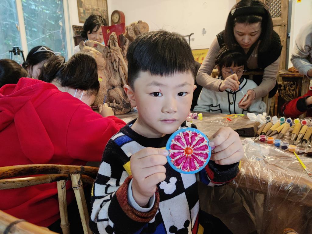 何飞为小朋友们介绍木雕的基本常识,从所用的雕刻材料到雕刻的技法,都深刻体现出木雕作为非物质文化遗产的独特魅力与所蕴含的厚重的文化底蕴。随后,志愿者们为小朋友们分发砂纸和木雕半成品。小朋友们在何飞的细心指导下,顺利将木雕打磨得更加光滑。在上色的过程中,小朋友们充分发挥自己的想象力、创造力,为木雕涂上了自己喜欢的色彩。