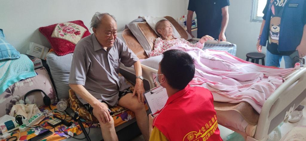 团队探访的老人,有行动不便的、有坐轮椅的、也有瘫痪卧床不起的。但是老人对于团队成员的到来,脸上洋溢着笑容,十分热情地与队员们交谈。他们给团队的成员分享家里的水果零食、讲述他们的过往经历、握着志愿者的手表示感谢。