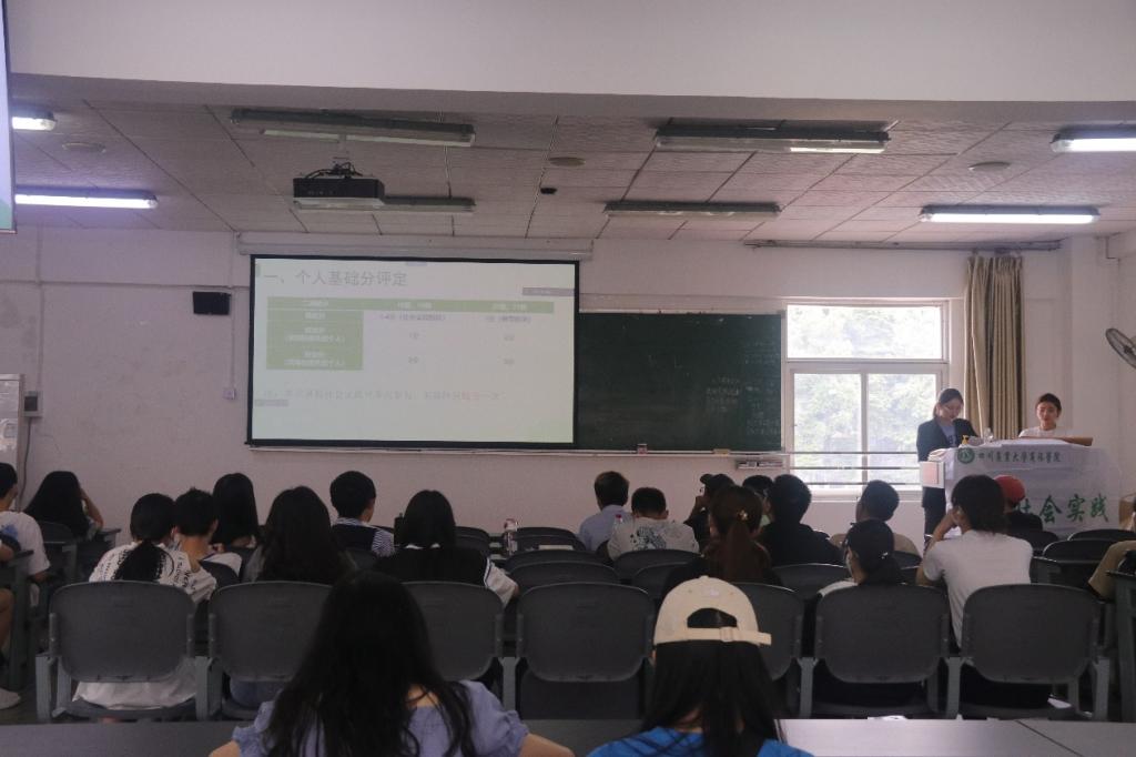 主讲人舒雨欣简要介绍了实践活动的内容、主题和形式。详细介绍了实践活动组队方式、经费来源、材料收取以及个人基础赋分、院级重点团队申报、优秀团队评选等相关事宜,并进行了暑期实践活动记者团招募,最后,相关工作人员进行了现场答疑。