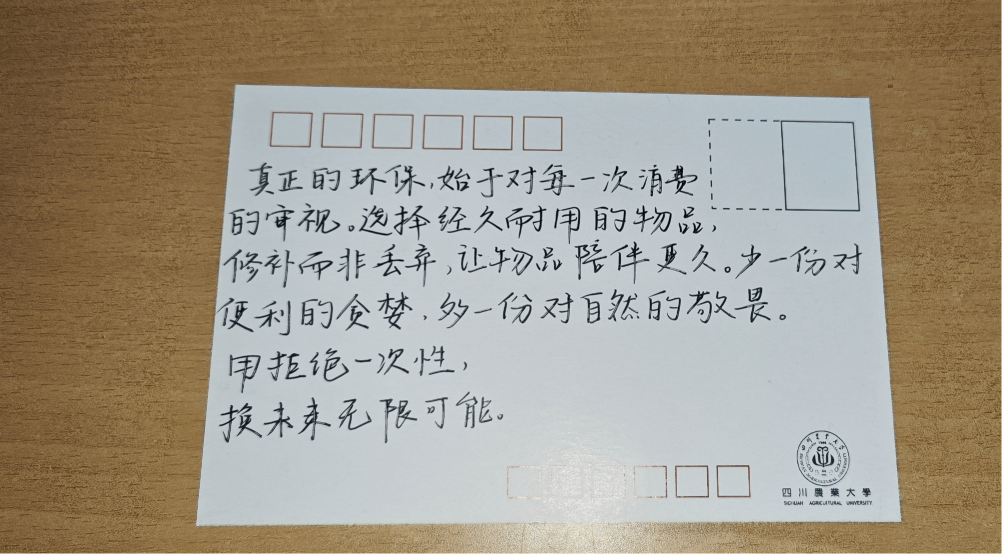 活动期间,线上“绿植环保知多少”知识竞答在易班APP开展,题目涵盖植树节知识、生态价值、校园绿化、低碳生活等内容,同学们踊跃参与、认真作答,在趣味答题中提升生态环保意识。线下环保主题明信片创作同步开展,学生们围绕绿植保护、绿色生活等主题进行创作,并通过QQ空间展示与纸质提交相结合的方式,传递护绿倡议,凝聚环保共识。