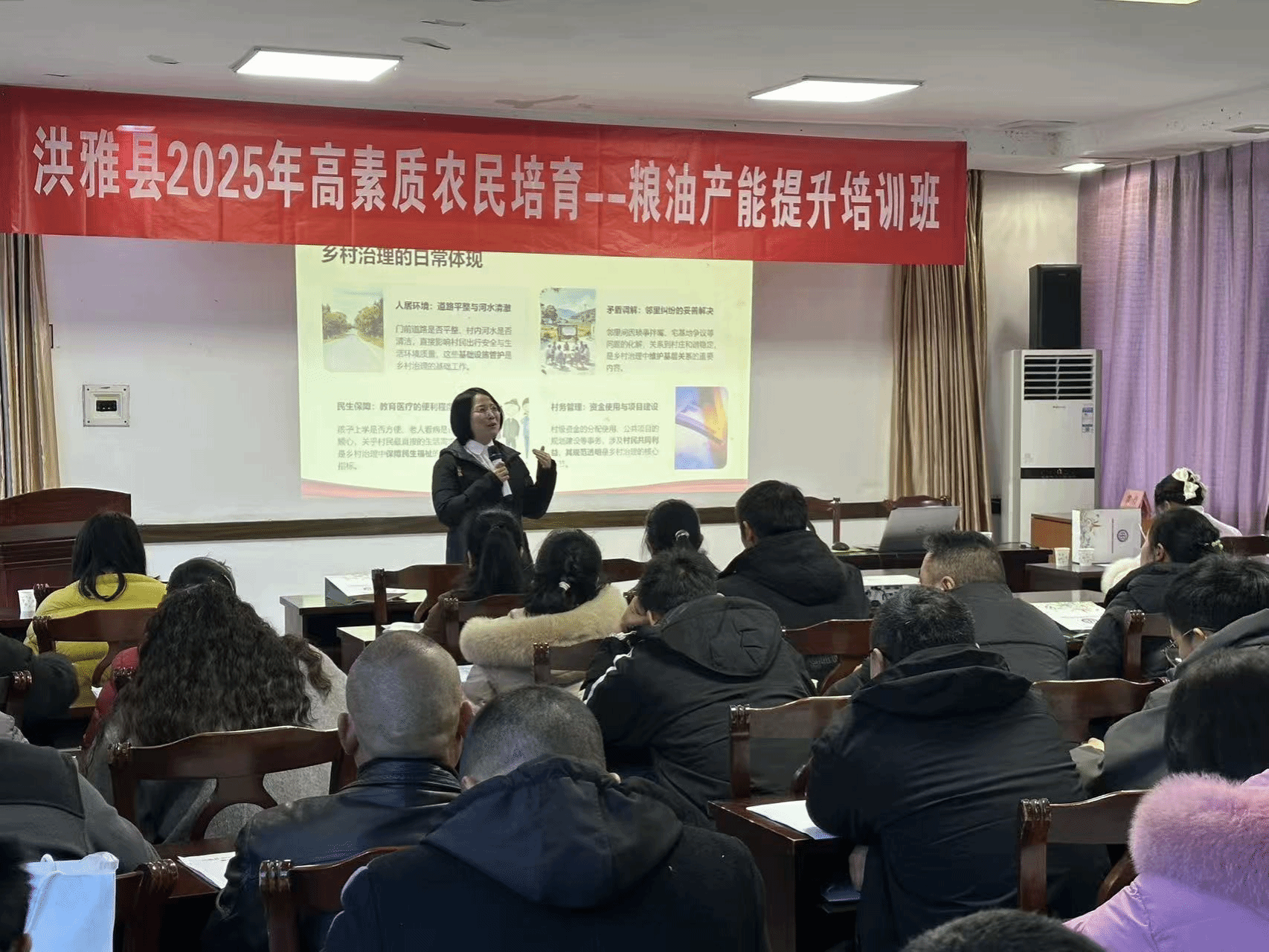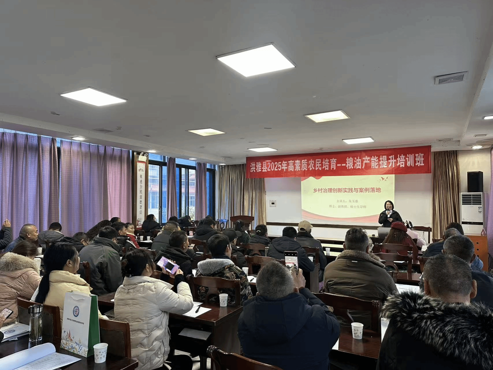朱玉蓉副教授围绕乡村治理创新实践的政策背景、基本规律和典型场景展开培训,并结合具体案例和提升粮油产能的可能路径,对乡村治理过程中的常见痛点和应对措施进行了细致介绍。培训立足洪雅县发展需求,受到参训学员普遍好评,体现了我校教师立足专业、服务乡村的责任担当。